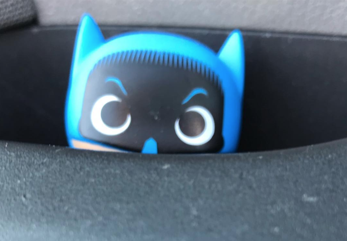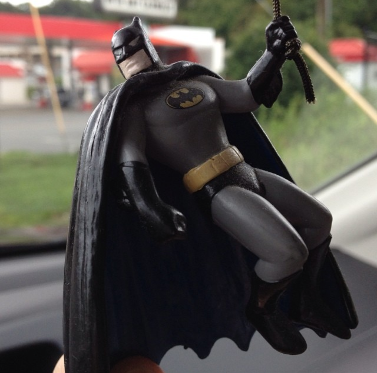 Whenever they’re in my car, they see this hanging from the rear-view mirror. This Batman toy has been in every vehicle I’ve ever owned, going back 25 years. It’s my good luck (Bat-luck?) charm.