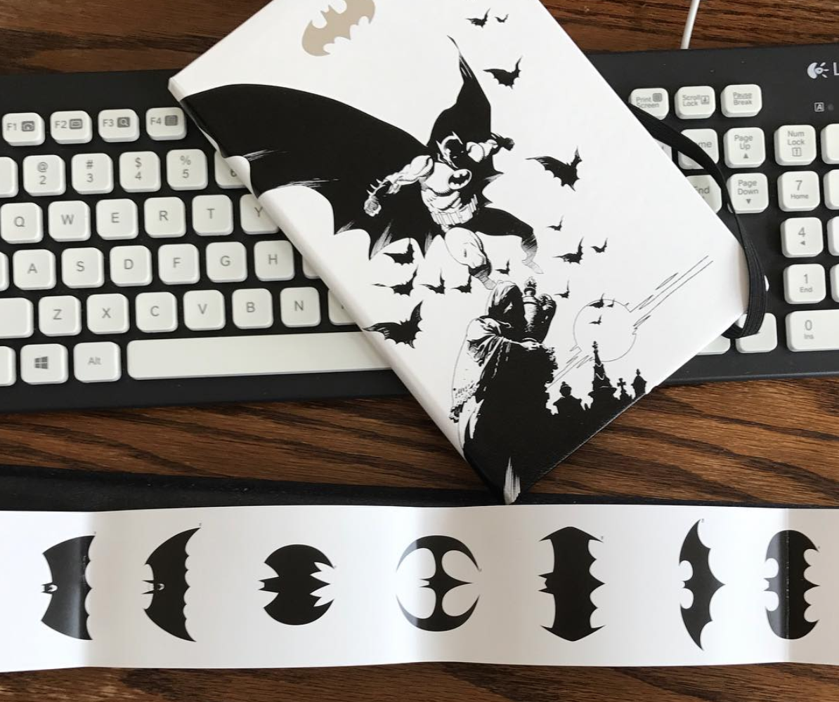 Both of those kids know their uncle is a big Batman fan. (And Niece No. 3 will catch on when she’s old enough.) How could I even try to deny it? The evidence is all over the house. For instance, the treasured notebook that A. bought me a couple years ago: