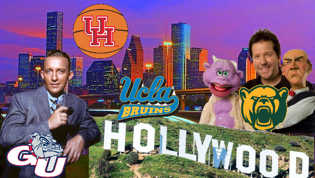 Each year for the Final Four, Michael Grant compares each of the four schools participating based on “cultural superiority.” Rather than just have a picture of players from Gonzaga, Baylor, Houston, or UCLA, it seemed more fun to use famous alumni or landmarks.
