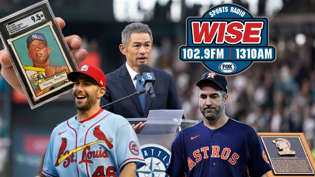 Topics on this week’s WISE Sports Radio baseball segment include a 1952 Mickey Mantle card going for $12.6 million, Justin Verlander’s calf injury, Ichiro being honored by the Seattle Mariners, a surprise number retirement for Willie Mays, and Paul Goldschmidt’s MVP-caliber season for the St. Louis Cardinals.